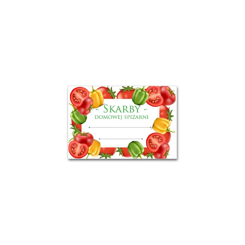 KPL. 36 ETYKIET SAMOPRZYLEPNYCH 60X40MM  *SKARBY DOMOWEJ SPIŻARNI - PAPRYKA/POMIDOR*