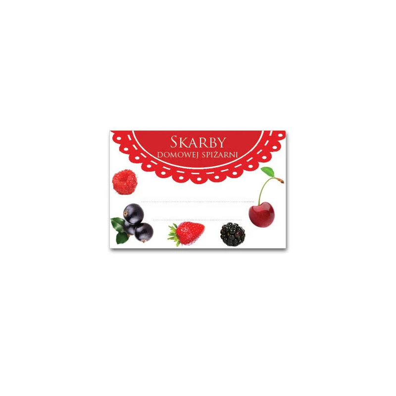 KPL. 36 ETYKIET SAMOPRZYLEPNYCH 60X40MM *SKARBY DOMOWEJ SPIŻARNI - SERWETKA OWOCE*