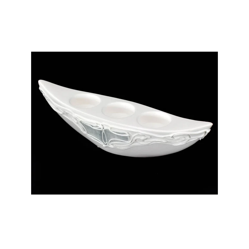 CERKAM-ŚWIECZNIK III ŁÓDKA *DEKOR WITRAŻ-BIAŁY* C-379W