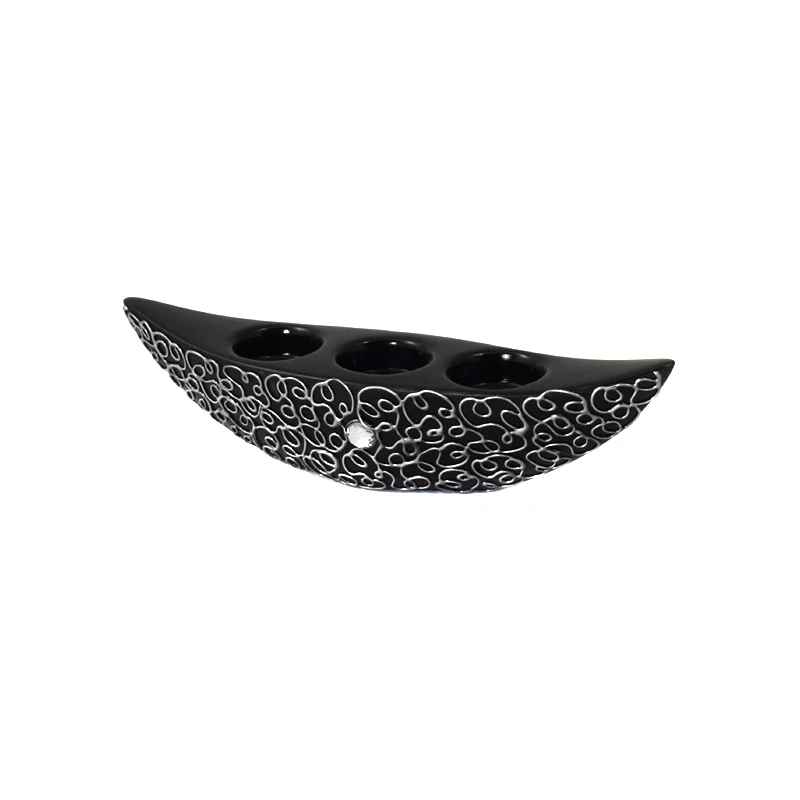CERKAM-ŚWIECZNIK III ŁÓDKA *DEKOR SREBRO-CZARNY* C-379SC