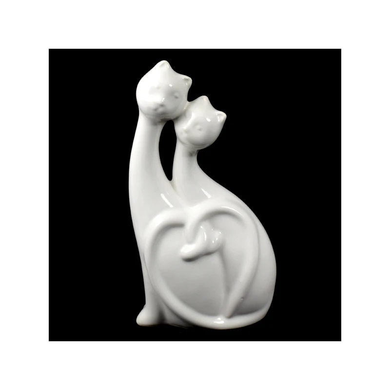 CER-KOT PODWÓJNY Z SERCEM *SZKLIWO BIAŁE* C-678SZB