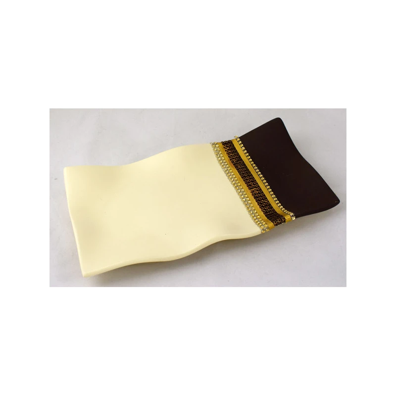 CER-PODSTAWKA FALOWANA PROSTOKĄT *DECOR PASEK 1/2 KREM* C-635P