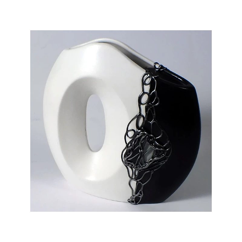 CERKAM-WAZON MAŁY PŁASKI Z OTWOREM *DECOR CZARNY* C-366DCZ