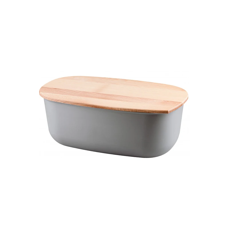 PRACTIC-POJEMNIK NA PIECZYWO SZARY/POKRYWA DREWNO