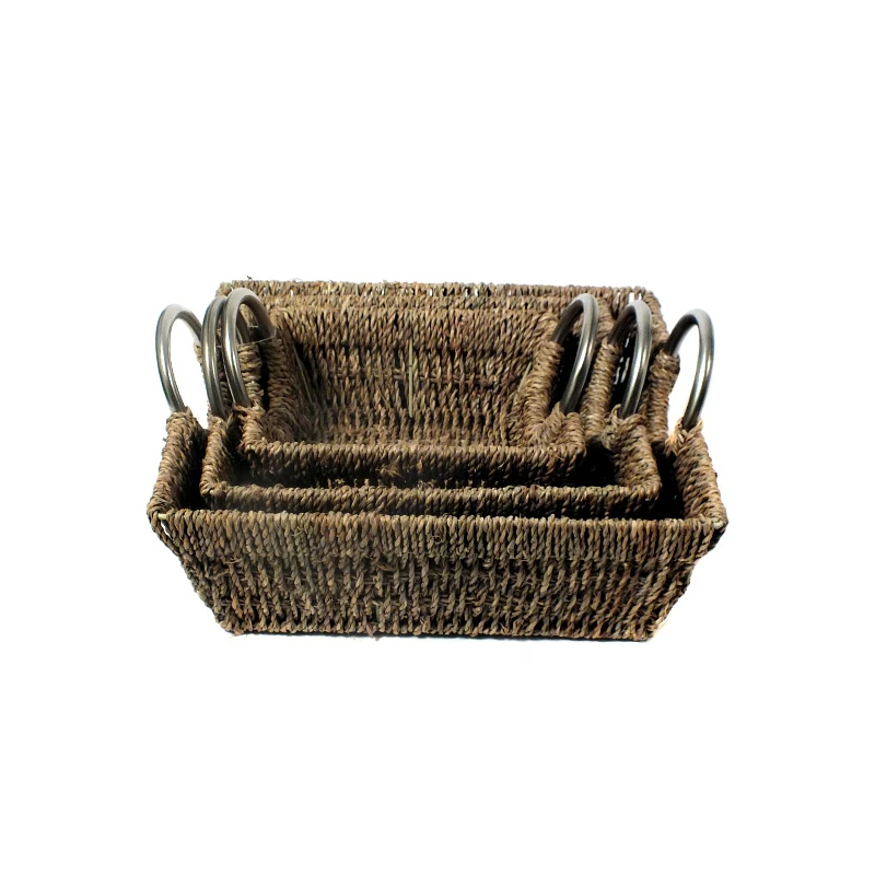 TRU-KPL. 3 KOSZY Z TRAWY *KWADRAT* METAL UCHWYTY 20-2408A
