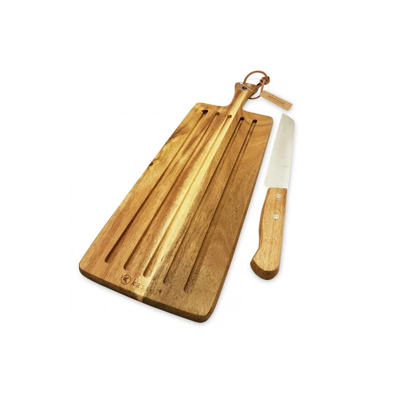 KAS-KPL. DESKA DO KROJENIA *AKACJA* 45.8X14.5X1.3CM+NÓŻ DO CHLEBA