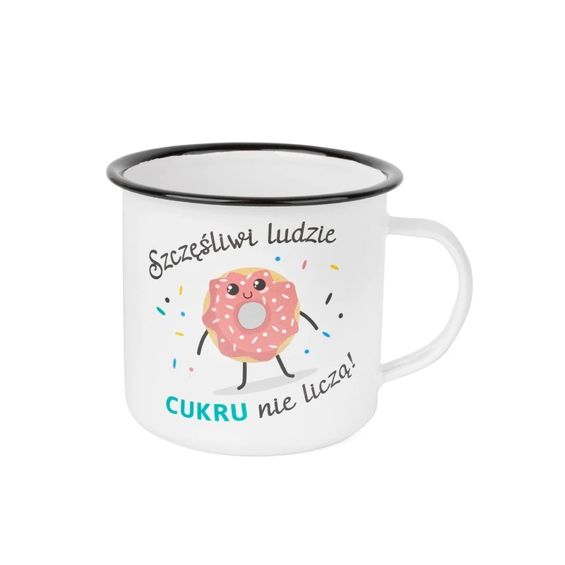 TAD-KUBEK EMAL. BIAŁY ZDOB. 10CM 750ML *SZCZĘŚLIWI LUDZIE*