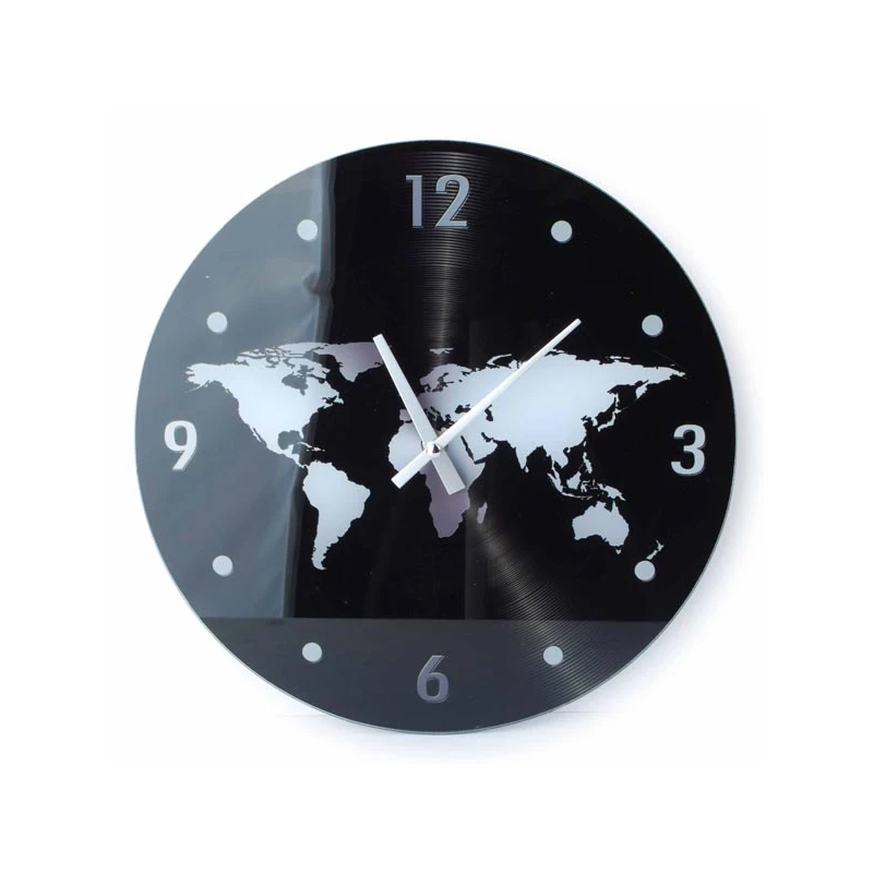 MON-ZEGAR SZKLANY OKRĄGŁY *MAPA ŚWIAT CZARNA* 4048