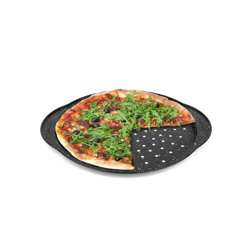 TAD-FORMA DO PIZZY PERFOROWANA OKRĄGŁA CZARNA Z UCHWYTAMI 37X33X2CM