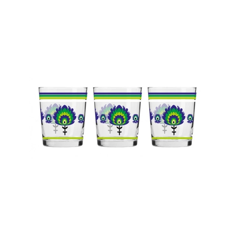 KR-KOMPLET 3 SZKLANEK 250ML *FOLK ZIELONO-FIOLETOWY* 9510