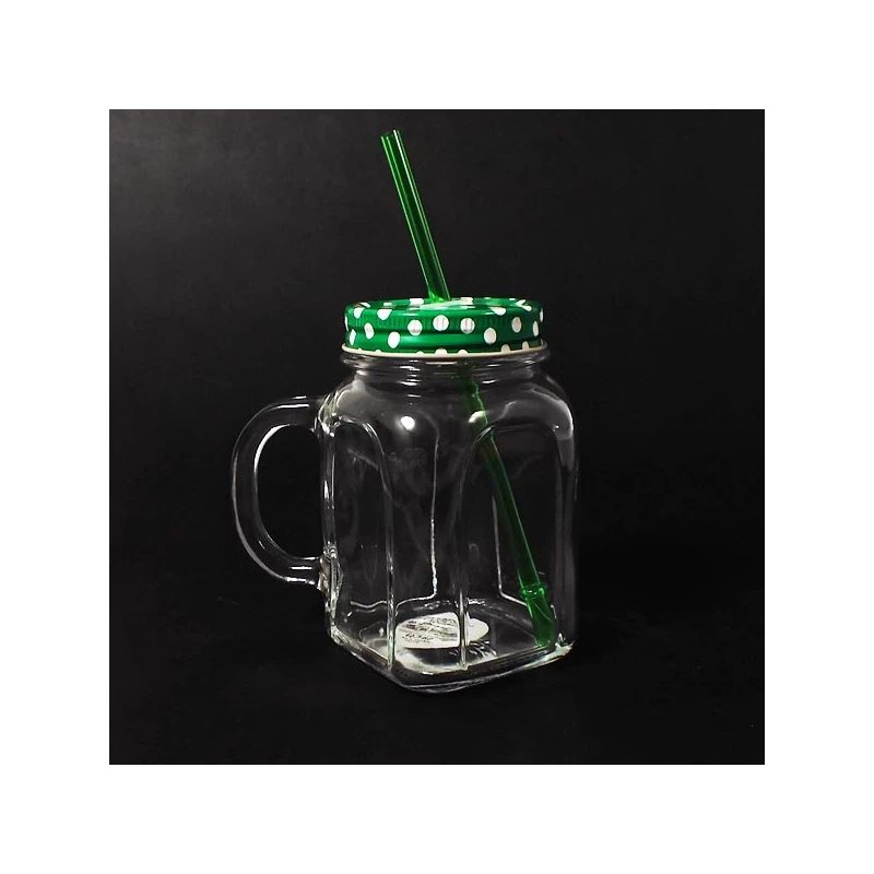 DAJ-KUBEK SZKLANY 450ML Z RĄCZKĄ ZAKRĘTKĄ I RURKĄ ZIELONY