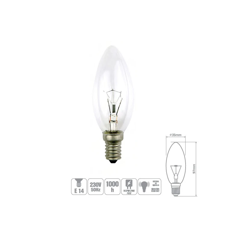 ŻARÓWKA WSTRZĄSOODPORNA CLIS-25CL 25W E14 ŚWIECA PRZEZROCZYSTA