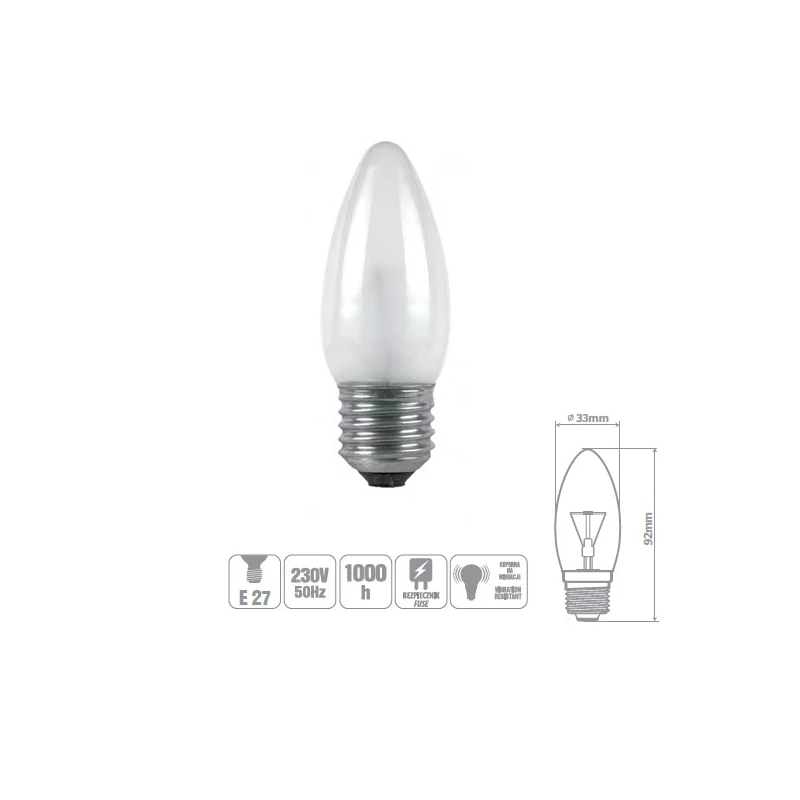ŻARÓWKA WSTRZĄSOODPORNA OLIS-25FR 25W E27 ŚWIECA MATOWA